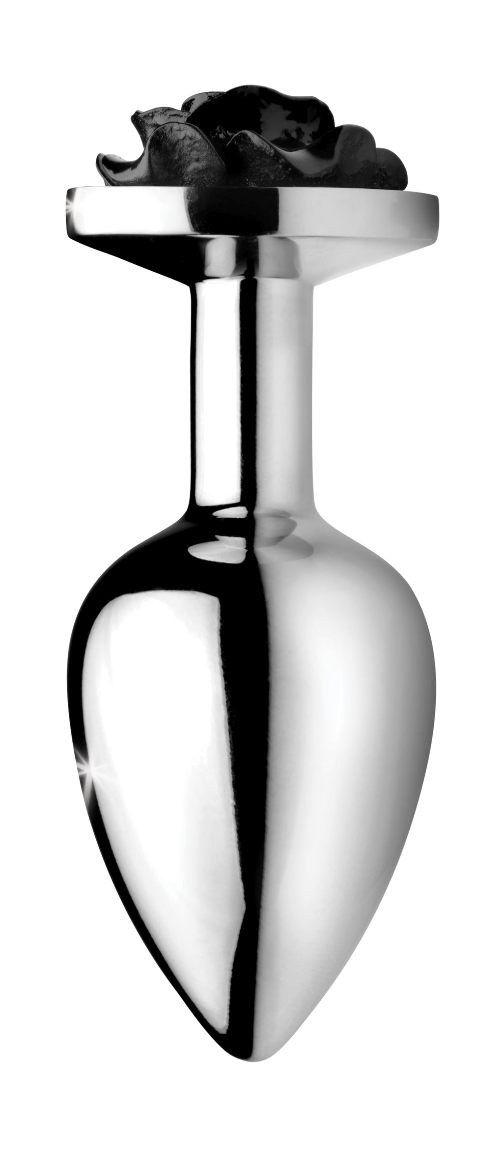 Beautify your booty with this darkly stunning rose! Featuring a smooth metal finish in lightweight aluminum, it features a beautiful deep black rose at the end which will flash as you bend over and tease your lover. The slim shaft will keep it from slipping out of place even during vigorous play. The nickel free aluminum alloy is nicely weighted and temperature sensitive for the perfect amount of sensation. When play is over, the non-porous material will clean easily without harboring any harmful bacteria. Make that booty bloom!