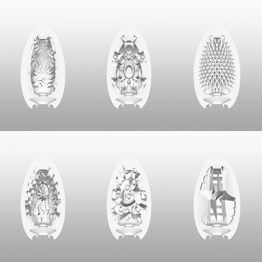 Different Strokes from Different Yolks! The TENGA EGG Series may look small, but their super-stretchable material can fit men of all sizes! The external designs of each EGG reflect the internal details within them! With a total of 6 eggs to choose from, you are sure to find a perfect match! This Variety 6 Pack contains 1 each of the following egg styles: Thunder, Crater, Misty, Cloudy, Shiny, Surfer.