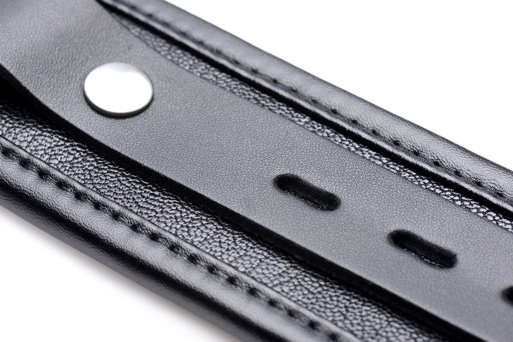 Instantly transform your bed into a piece of bondage furniture, arranging your lover as you see fit! They will be writhing in ecstasy as you please, tease, and torment their helpless body. The sturdy leather cuffs are lined with comfortable padding so that your playthings wrists and ankles will not grow sore as play sessions last long into the evening. Each cuff set comes with a connector chain for use without the bed straps. The buckle locks so that your lover will feel even more deliciously trapped and confined. Just slide the strap set under your mattress and pull the cuffs up at the corners. Adjust the straps as needed to fit all bed sizes. Spice up your sex life and you will never want to get out of bed!