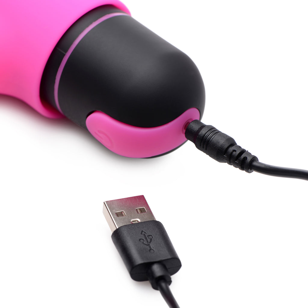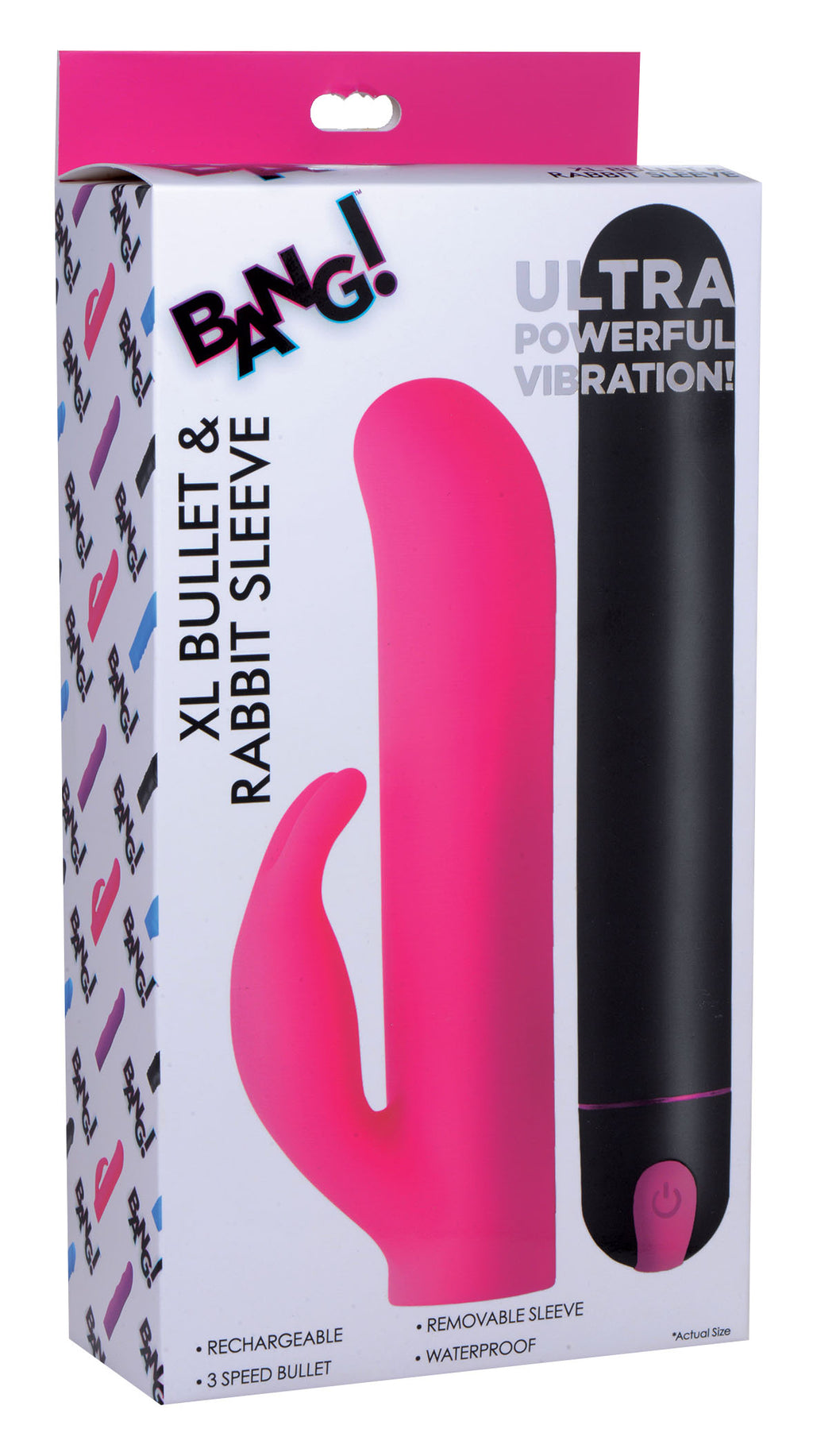 This extra large vibrating bullet features an extended body - slim and silky smooth with a powerful motor for exciting internal or external pleasure! Featuring a satisfying rabbit shaped silicone sleeve for buzzing clitoral pleasure as you thrust in and out.