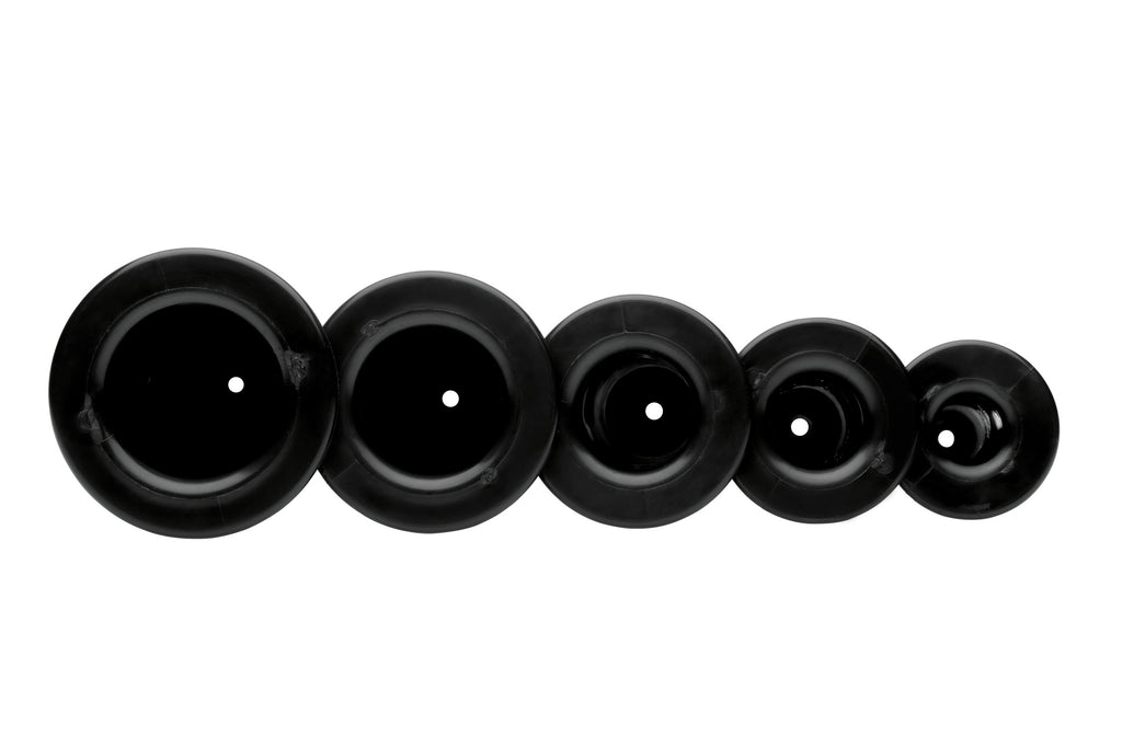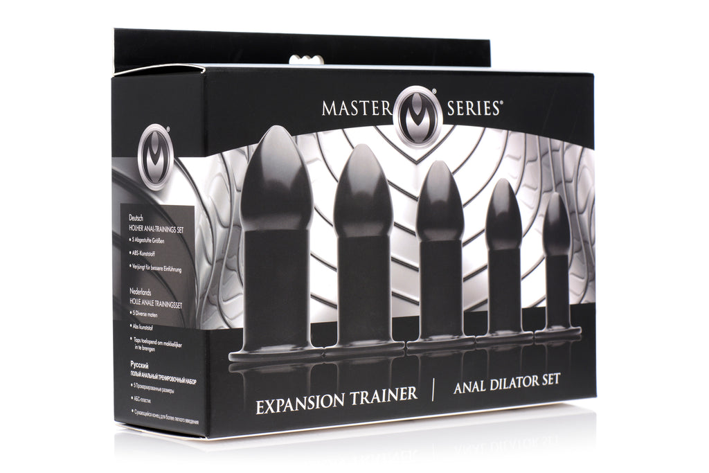 Go from backdoor beginner to advanced anal enthusiast with this set of 5 hollow, graduated sized anal dilators. Each tapered plug is shaped to be comfortably inserted, with a pointed end and flared base that will help keep everything in place for extended wear. The hard, smooth ABS plastic provides the firmness needed for easy insertion and is compatible with all types of lubricants. Use the plugs alone for pleasure, or use them as a tool to gradually step up your tolerance so you can take larger and larger toys. The graduated size allows you to work up to your desired size in ecstasy and ease.