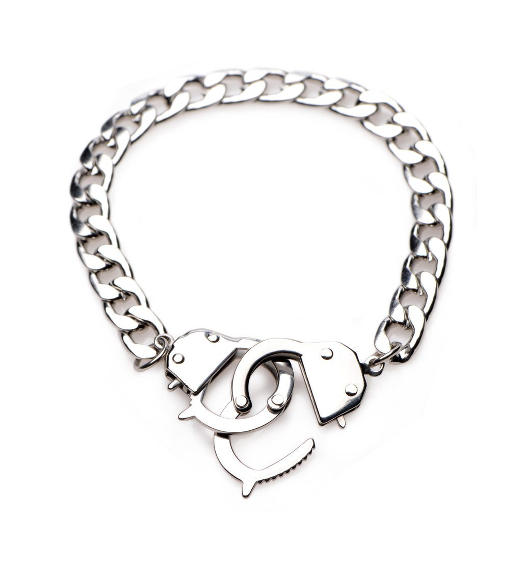 Make a statement with this kinky bracelet, whether you are sending out signals for a like-minded person, or letting the whole world know that you are locked down. This handsome bracelet is a discreet accessory to subtly display your sensuality. Give it as a gift or keep it for yourself! The curb link chain is sturdy, masculine, and appropriate for a Dom or a sub. The quick release latch makes it easy to take off or put on, but will not come undone unintentionally. Made of stainless steel, this bracelet is nickel-free so as not to irritate sensitive skin.