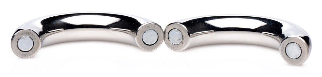 The magnetic closure makes it easy to equip this metal ring on and off your package, opening the door to beginners and experts to the world of metal cock and ball rings with little risk. The stainless steel material is naturally hygienic, nickel-free, and rounded near the closure to prevent pinching when equipping.