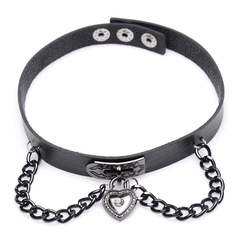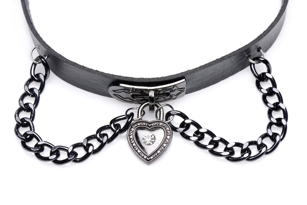 Put your gothic heart on display with this combination leather and chain choker! Sure to please those with a preference for the darker aesthetic, this Heart Chain accessory is made to add a sexy touch to your appearance.