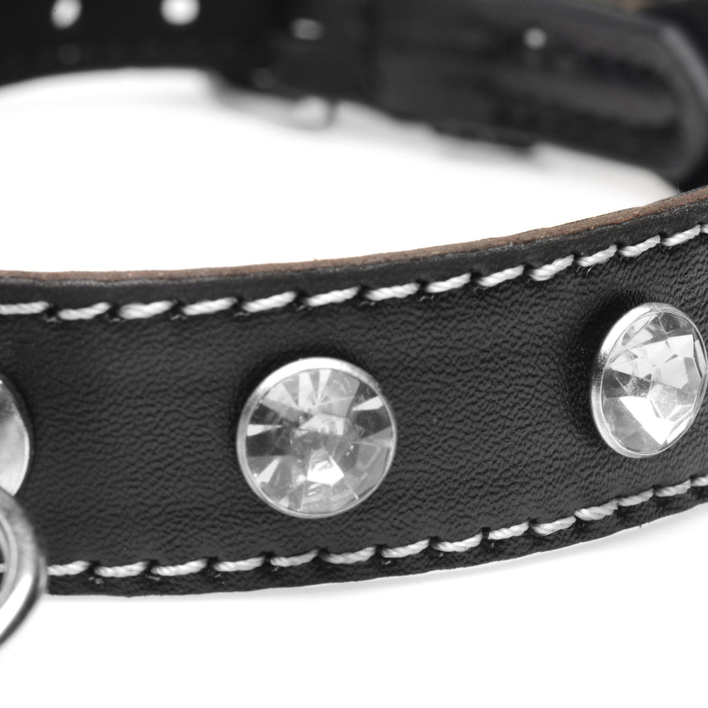 Attract the attention you deserve with this rhinestone choker! The dazzling rhinestones catch the light as you catch your partner s eye. Wear it as an accessory or as a statement! This submissive collar has a nickel-free O-ring attached at the center so you or your partner can attach a leash; let them walk you around as you proudly strut your stuff, or let them pull at the O-ring as they pull you into an embrace, a kiss or down to do devious and naughty deeds!
