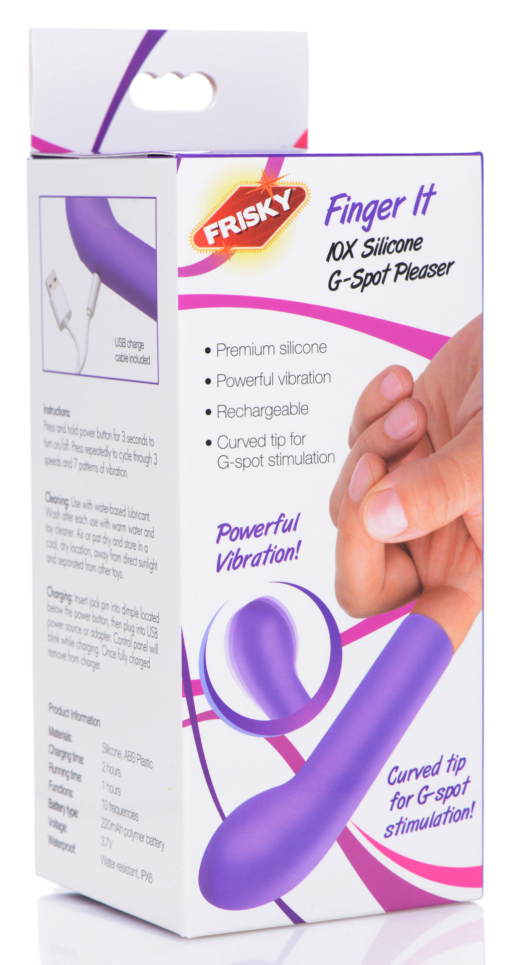 This G-spot pleaser fits over most fingers, allowing you to utilize the natural dexterity of your finger to find your favorite spot! Choose from 10 vibration intensities to buzz your insides or your outsides on the fly with easy to reach controls.