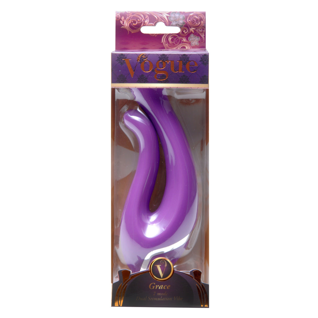 With a gracefully designed exterior and 7 powerful modes of sensual vibration, this dual stimulation vibrator is sure to bring you many hours of pleasure. Made of satin soft premium silicone and ergonomically contoured to mimic your natural body curvature, this decadent vibe features two points of orgasmic stimulation. You can choose to insert the longer piece, and use the other for clitoral stimulation. Or insert both for a wildly fun adventure. Use it to tease the base of the penis or scrotum, or insert one arm anally while the other teases you from the outside. Once you turn on this powerful vibe with its many vibrational speeds and patterns, you will be transported to a utopian bliss all your own. The simple two button design integrated at the base allows you to control your pleasure easily.