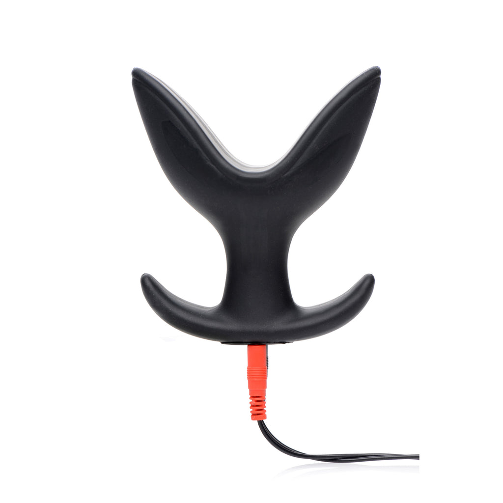 This electrifying plug allows you to experience Estim and anal stretching at the same time! Add a shock of pleasure to your expansion experience! Combine the tickles and jolts of electrosex with a smooth, manageable insertion that sprouts into a wide, anal invasion! This unique anal plug pinches together for comfort while you push it into you, but opens up once it gets past your sphincter, pressing on your anal walls. Made of premium silicone, this toy is non-porous and phthalate-free. Unplug from leads to clean with mild soap and warm water and avoid use with silicone lubricants.