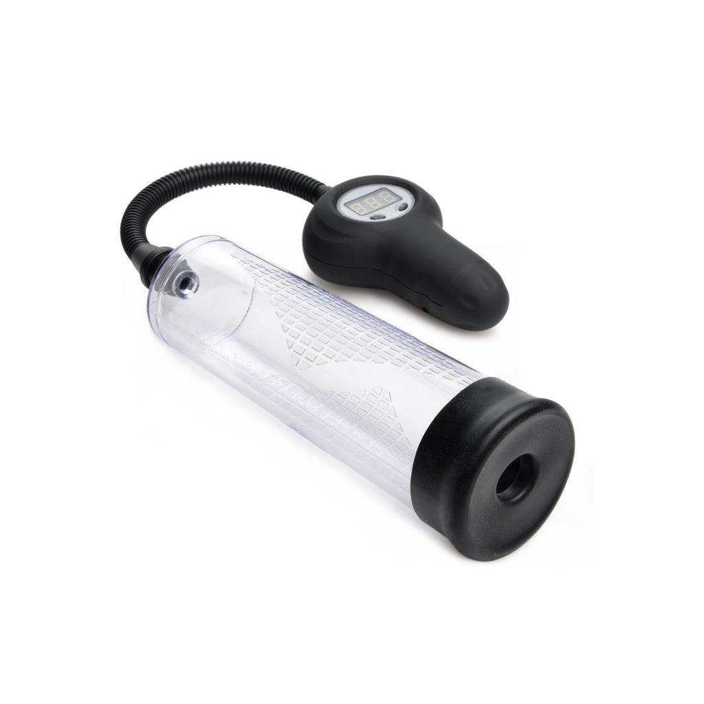 Draw massive amounts of blood into your penis to increase size and sensitivity! This powerful male sex toy uses a digital pump and gauge to create and measure pressure within the cylinder. One easy-to-use button turns the suction on or off, while another button quickly releases air when you are ready to remove the pump and get some action. Imagine the sexual possibilities, playing solo or with a partner, when your engorged member feels every touch, stroke, lick, or thrust more intensely than ever before! The cylinder is marked with length measurements so that you can keep track of your gains, while texture allows you to maintain a firm grip. The sleeve around the opening ensures that you get a tight seal everytime. This sleeve is made of premium, phthalate-free silicone and should not be used in combination with silicone lubricants. Clean after use with mild soap and warm water.