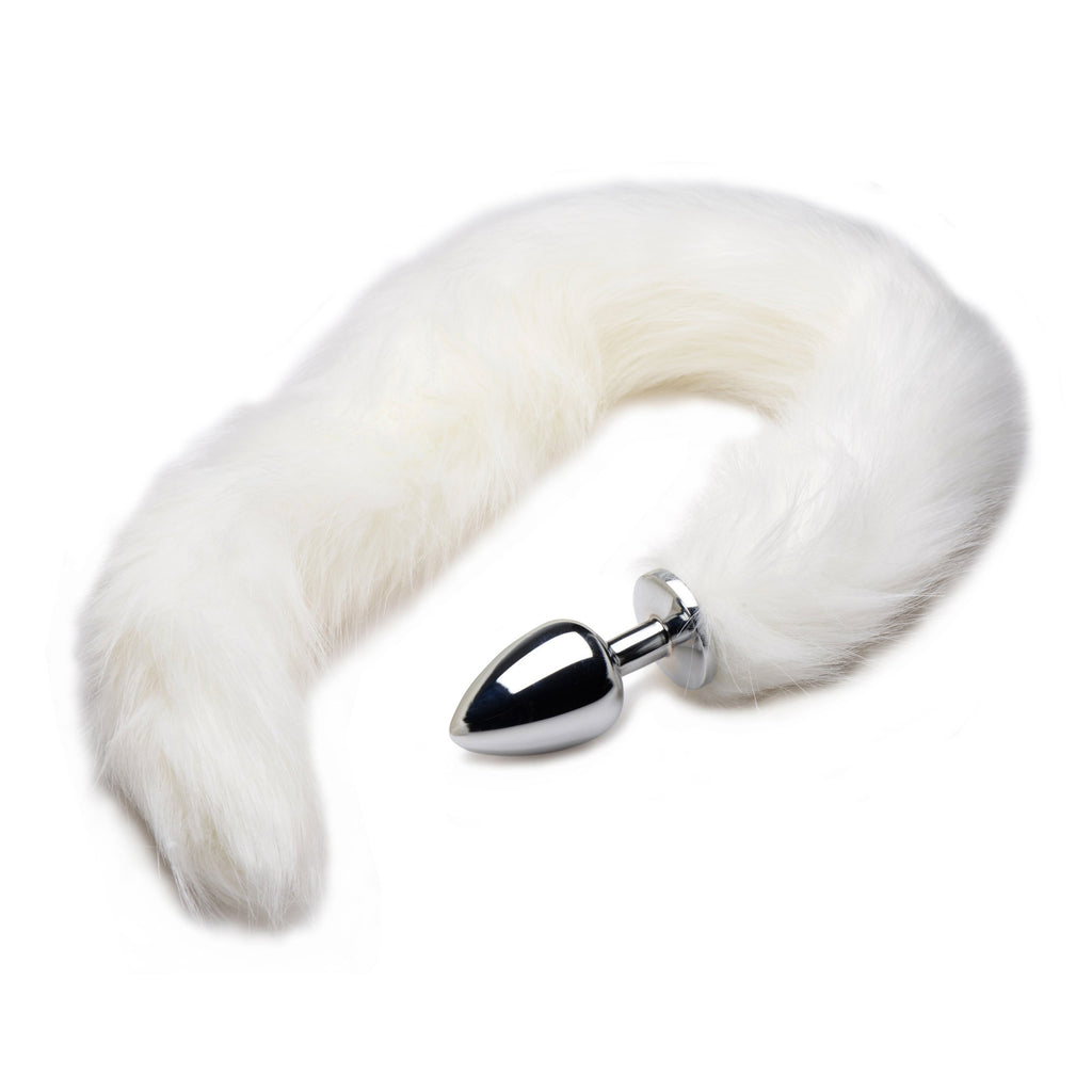 Impress your lover with your fluffy, white tail, as pure as snow! Let out the wild animal within with a long, luxurious tail plug. Savor the sensation of cool, hard metal inside you as the weight of the tail creates a delightful, heavy fullness. The petite plug is smooth and easy to insert, making it perfect for even beginners to anal play. You will love the soft, sensual sensation of the tail as it brushes against the backs of your legs, and your lover will be turned on as you crawl around at their feet. Show them what a well-behaved pet you are! Made of aluminum, this plug is non-porous and phthalate-free, making it easy to sanitize with mild soap and water and compatible with all types of lubricants.