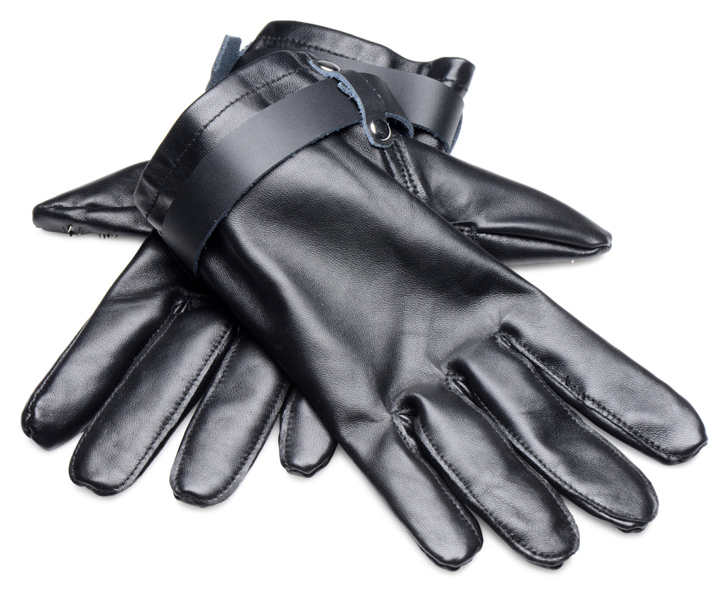 Built for Doms and subs, each of the fingers of this pair of Vampire Gloves is decorated with small spikes from base to tip, transforming your hand into a pad of barbed pleasure. Doms can use these gloves to lightly rub, spank, and caress their subs body to tease and stimulate with the tiny spikes. Turn up the intensity and engage in extreme pain play by slapping your subs meaty parts with authority. Always be sure to properly communicate the limits of your BDSM play before your scene!