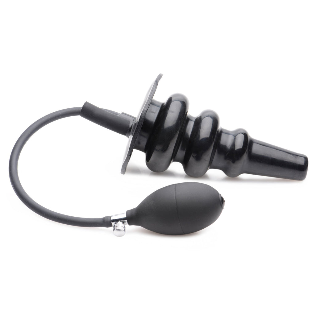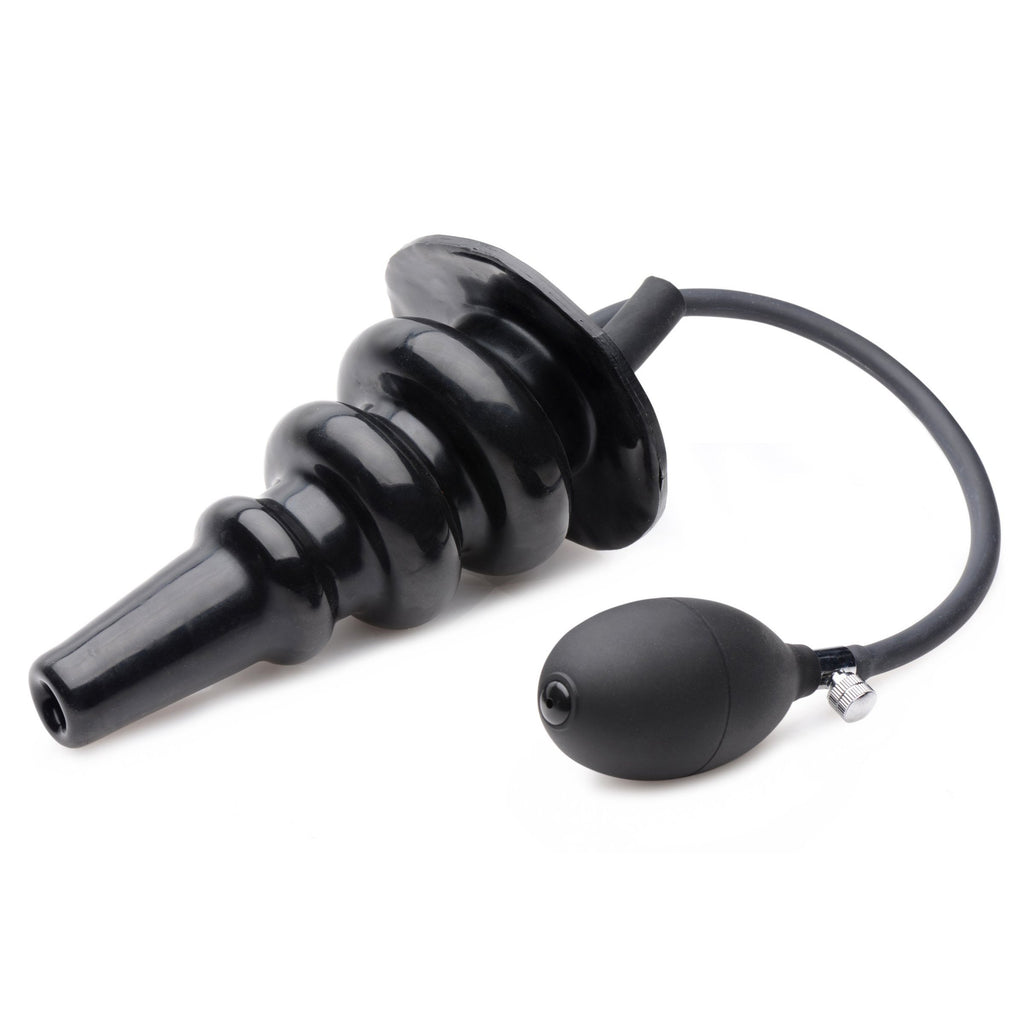 Stretch open your anus while you clean it out! This extreme enema plug uses a medical-grade pump to inflate inside you! The accordion-style body allows you to feel three smooth bulbs as you push it into you. The tubing that extends from the base is perfect for inserting the nozzle of your shower or gravity enema set. Send the flood of liquid into you and pump up the plug to experience a massive sensation of fullness! When you are done, twist the pressure release valve to deflate. Compatible with silicone and water-based lubricants. Clean after use with mild soap and warm water.
