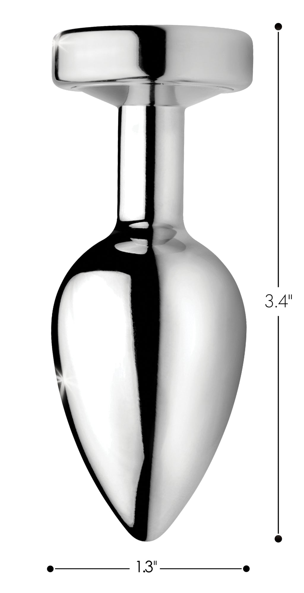 Measurements: 3.4 inches in total length, 3 inches insertable length, 1.3 inch in diameter at widest point, .45 inches in diameter at narrowest point