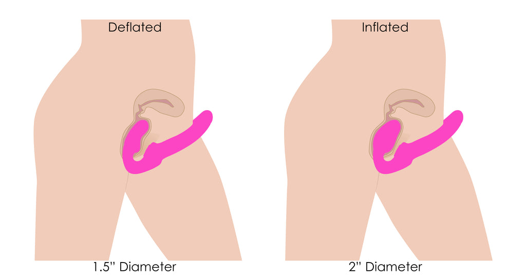 Measurements:9.5 inches in total length. Vaginal bulb is 4 inches insertable length and inflates from 1.55 to 2 inches at widest diameter. Shaft is 5.75 inches insertable length, 1.5 inches at widest diameter.