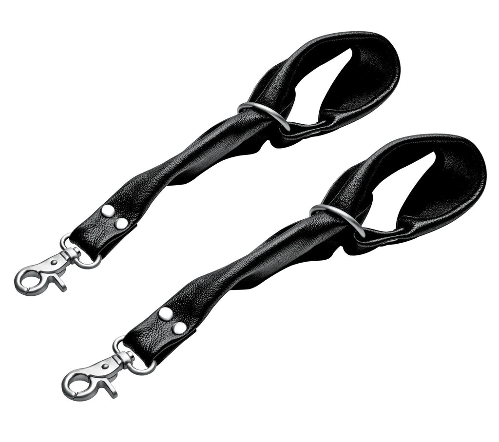 These easy to use and durable leather restraints use the weight of their own body to cinch tight, restricting movement and leaving them helpless. Use on wrists or ankles- the more they pull, the tighter these get. The silver metal is nickel-free, and the supple yet strong leather has a premium look and feel. The ends have a durable trigger snap hooks that open and close easily yet hold tight during rough play.