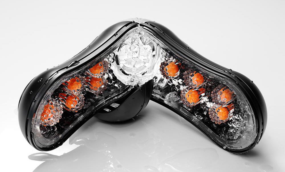 The hourglass shape and ergonomic design makes this masturbation device easy to hold during play and the outer pressure pads allow for direct control so you can find the prefect squeeze and sensation.