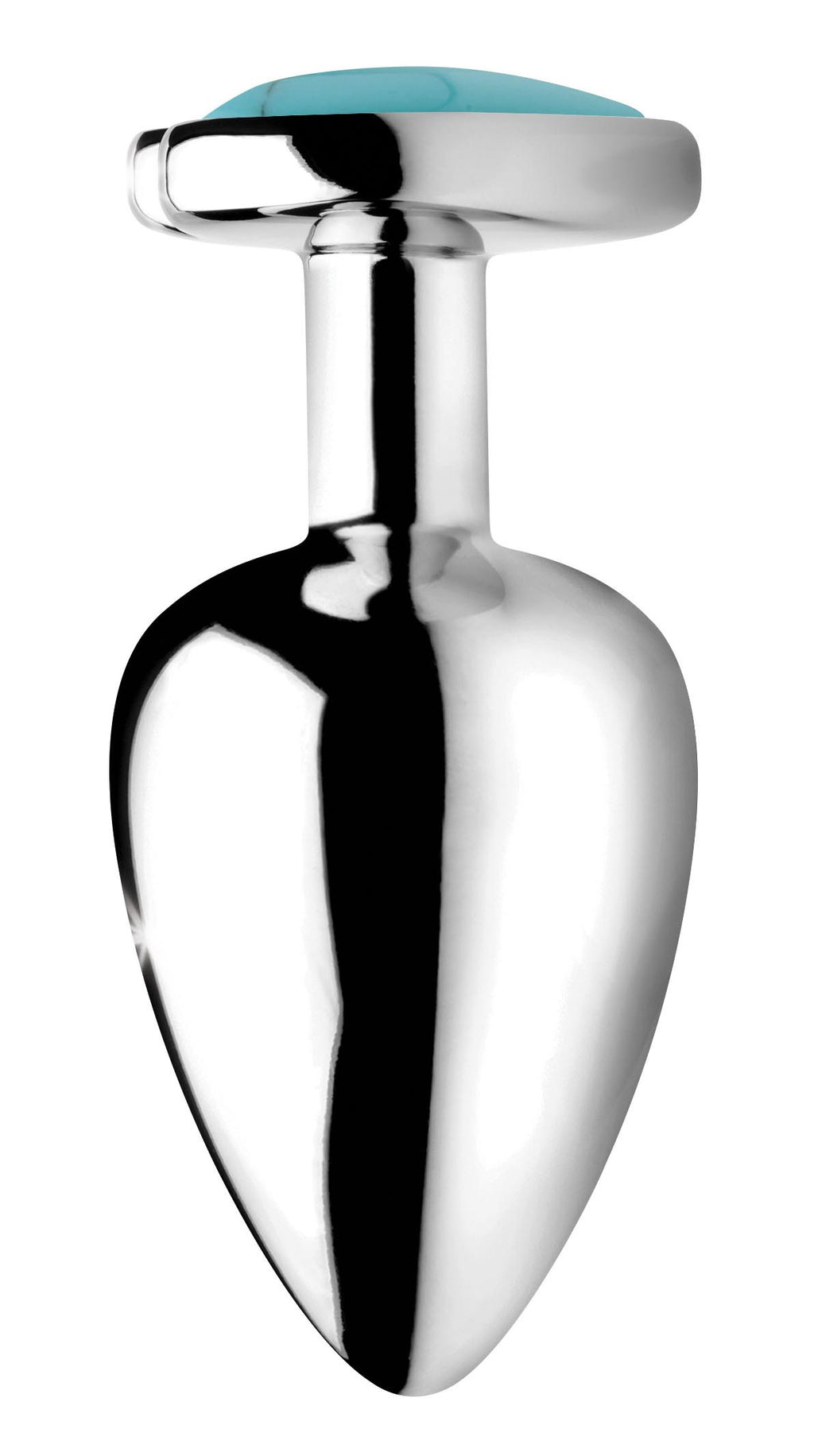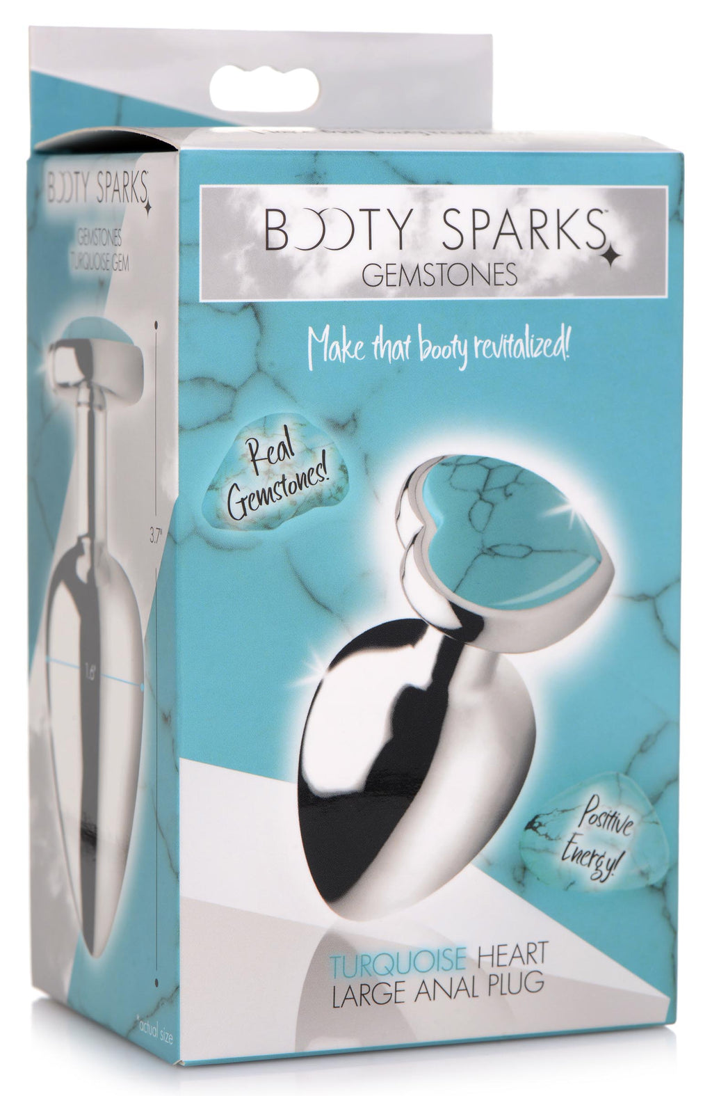 Revitalize your booty with the positive energy of this genuine heart-shaped Turquoise Gem butt plug! The real Turquoise gem embedded in the base of this metallic butt plug adds a splash of blue to your backdoor, all the while protecting your aura from negative energy. Perfect for anal warm ups on your own or play with a partner!