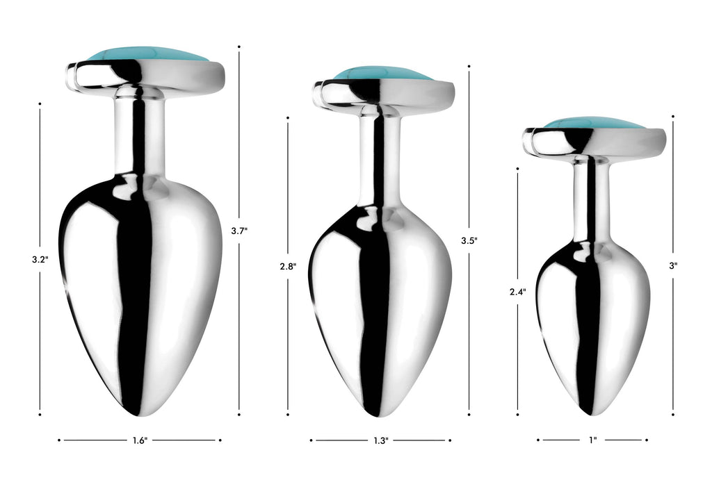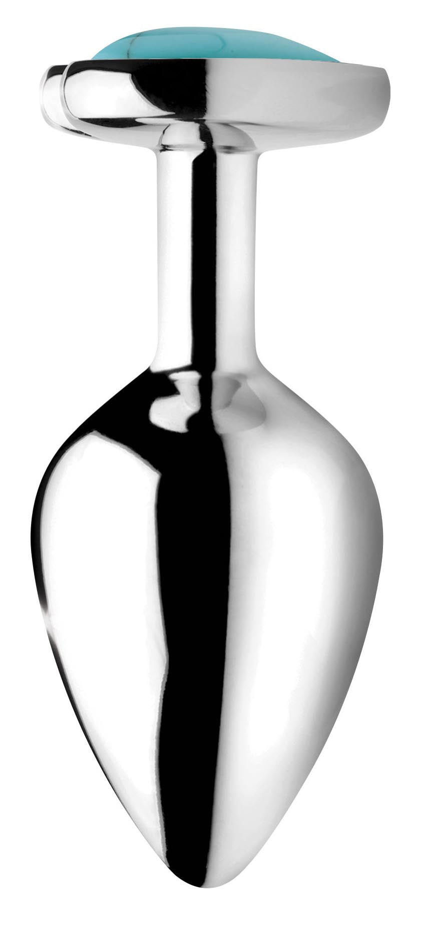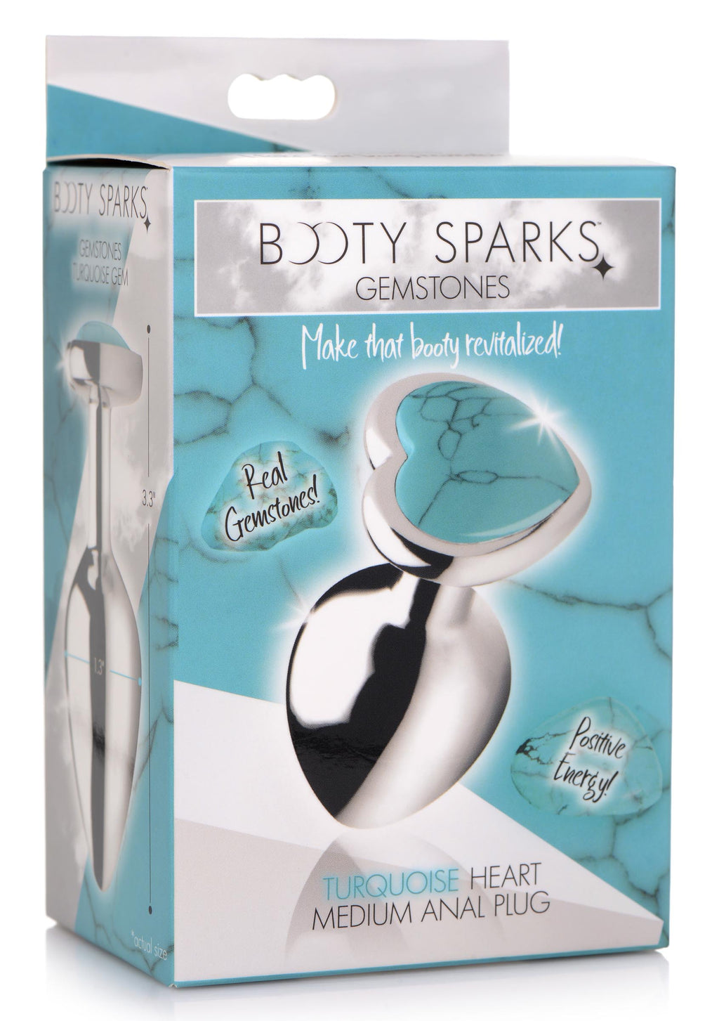 Revitalize your booty with the positive energy of this genuine heart-shaped Turquoise Gem butt plug! The real Turquoise gem embedded in the base of this metallic butt plug adds a splash of blue to your backdoor, all the while protecting your aura from negative energy. Perfect for anal warm ups on your own or play with a partner!