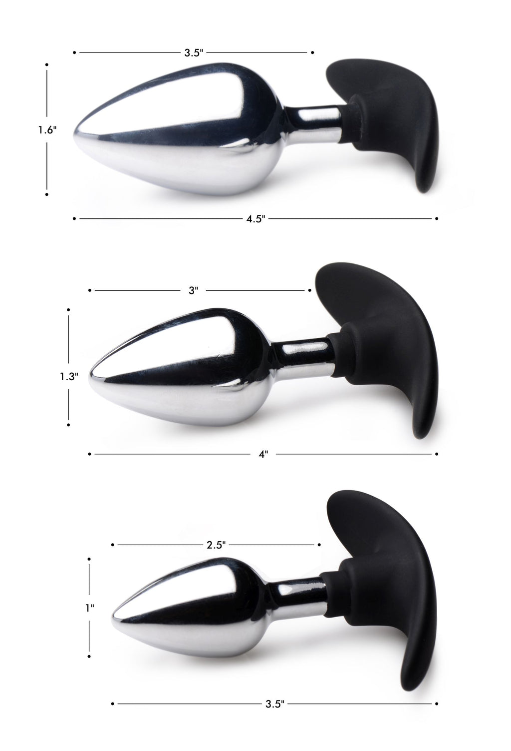 Measurements: Overall length 4 inches, insertable length 3 inches, widest diameter 1.3 inches