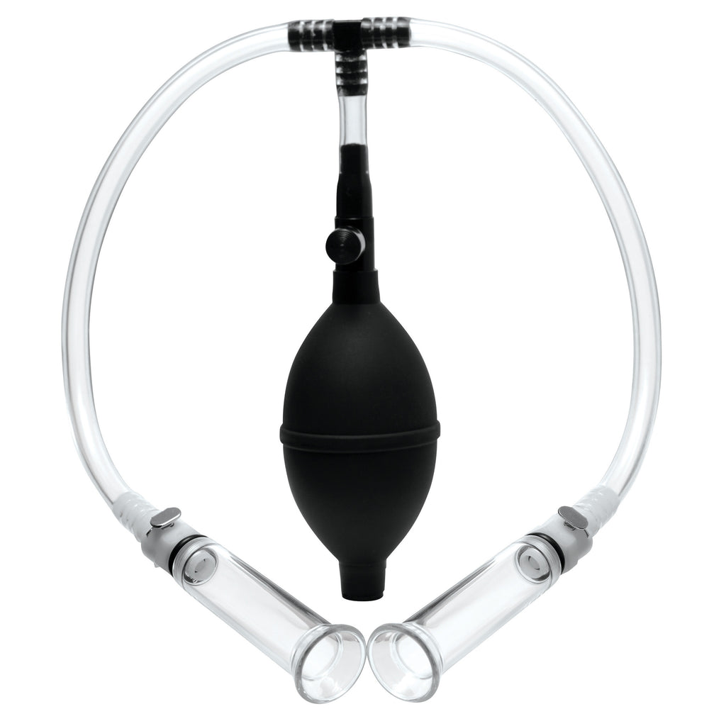 Nipple play enthusiasts will love this easy-to-use pumping system! Nipple suction increases sensitivity and temporarily engorges as it draws increased circulation into the area. The sensation is perfect for foreplay or during masturbation. You can even detach the cylinders and keep them on while you fool around. Just place the industrial-grade acrylic cylinders over your nipples, using lube if necessary to make it airtight. Pump the hand bulb to initiate suction. When you are done, a quick release valve allows you to immediately release the pressure, effectively freeing your nipples. Excite your nipples in a unique new way!