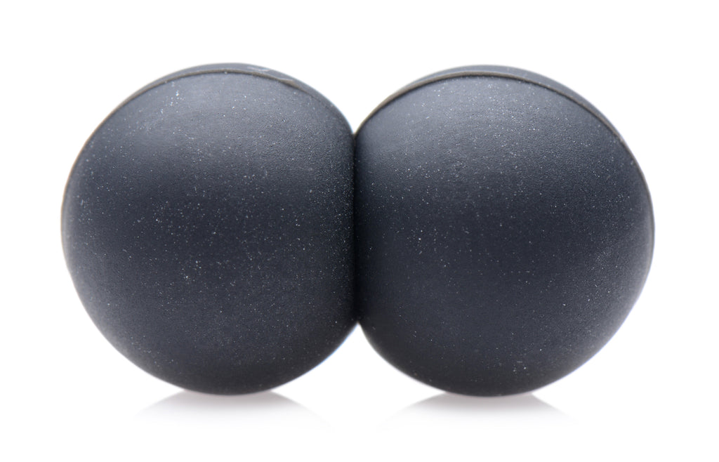 These devilish orbs deliver powerfully pinched pleasure. The soft phthalate-free silicone coating decreases the intensity of the pinch while still maintaining the strength. This set of two ultra magnetized spheres may be small in size, but they pack some serious pressure. Once placed on sensitive flesh, these extremely powerful, but soft to the touch magnets begin to apply pressure. Make a game of seeing how long they can keep this pinching set of extra strong magnets in place. As your plaything relaxes, the pressure will continue to give them what they have been craving.