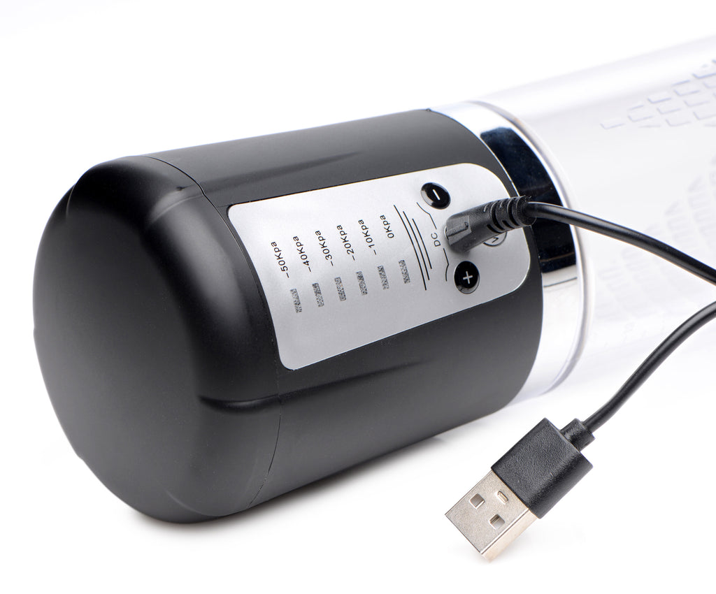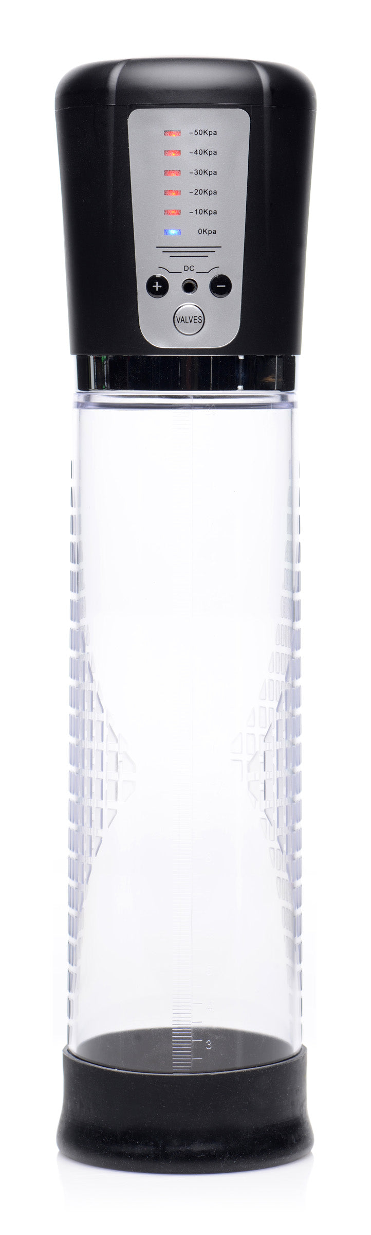 Explore 5 levels of suction, finding your perfect amount of pressure with the plus and minus buttons. The easy-to-read display will tell you how many pascals of internal pressure you are vacuuming your penis with. When you have had enough, a pressure release valve button will release the pressure so that you can play with your erection!