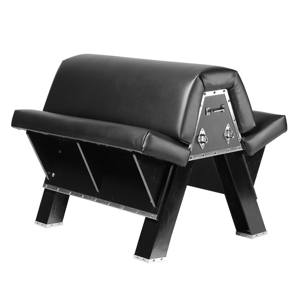 This exquisite bondage horse is sturdily built and made to last. The bench comes partially assembled- no confusing parts or manuals. Designed so that your partner, once on top, is perfectly positioned for whatever you have in mind. There are sturdy rings at the front and back, to which you can attach ropes, cuffs, or any sort of restraint. The outer material of the bench is non-porous and makes for easy clean-up, and resists any fluids or staining. This is an exceptional bench and a must-have for any true bondage enthusiast. It is sure to be one of your favorites for years to come!