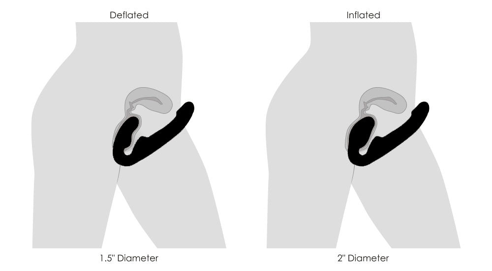 Measurements: Overall length 9.4 inches, dildo insertable length 5.6 inches, dildo width 1.5 inches. Vaginal bulb insertable length 4.5 inches, vaginal bulb width 1.5 inches, vaginal bulb width inflated 2 inches.